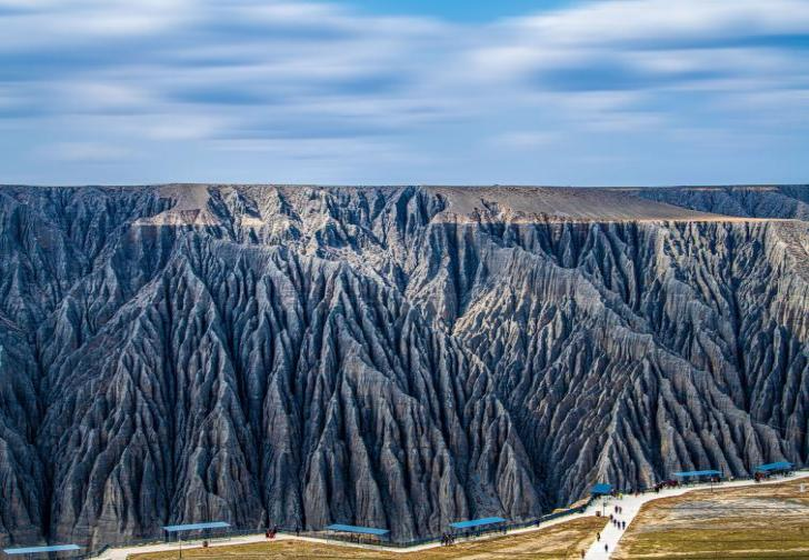 We will pass by the Dushanzi Grand Canyon with 100-400 meters wide. After the river rushes out of the Tianshan Mountains, it cuts into the magical scenic canyon formed by the sloping plain to the southwest of Dushanzi. The terraces on both sides of the canyon can be clearly seen, which can be divided into at least 9 levels. The alluvial gullies formed by the snow and rainwater flowing down from the Tianshan Mountains through the soil here carved out these strange landscapes on the valley walls. The canyon starts from the foot of the mountain and forms distinct layers of soil on the grassland. Standing on the top of the canyon, you can see all the scenery and it will more than live up to all of your expectations!