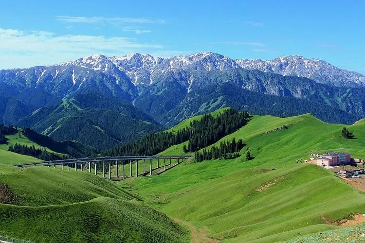 You can stroll on the shore, enjoy the blooming wildflowers and the beautiful grassland around the lake. Then driving on the spectacular Guozigou Bridge, the largest and most important bridge in Xinjiang.