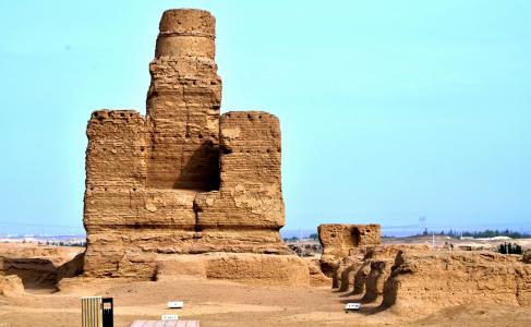 Jiaohe Ruinsis located on a mesa in willow leaf shape between the Yarnaz River valleys 10 kilometers to the west of Turpan City. running from northwest to southeast, 1760 meters long and 300 meters across at the widest part. of the residents lived in the Gaochang City in the Jin-Tang times.. Between 1959 and 1975, a great number of cultural relics have been unearthed, including Chinese documents, textiles, epitaphs, coins, clay sculptures, pottery, wooden wares, silk-paintings, crops and foods ,etc Known as “the Underground Museum.
