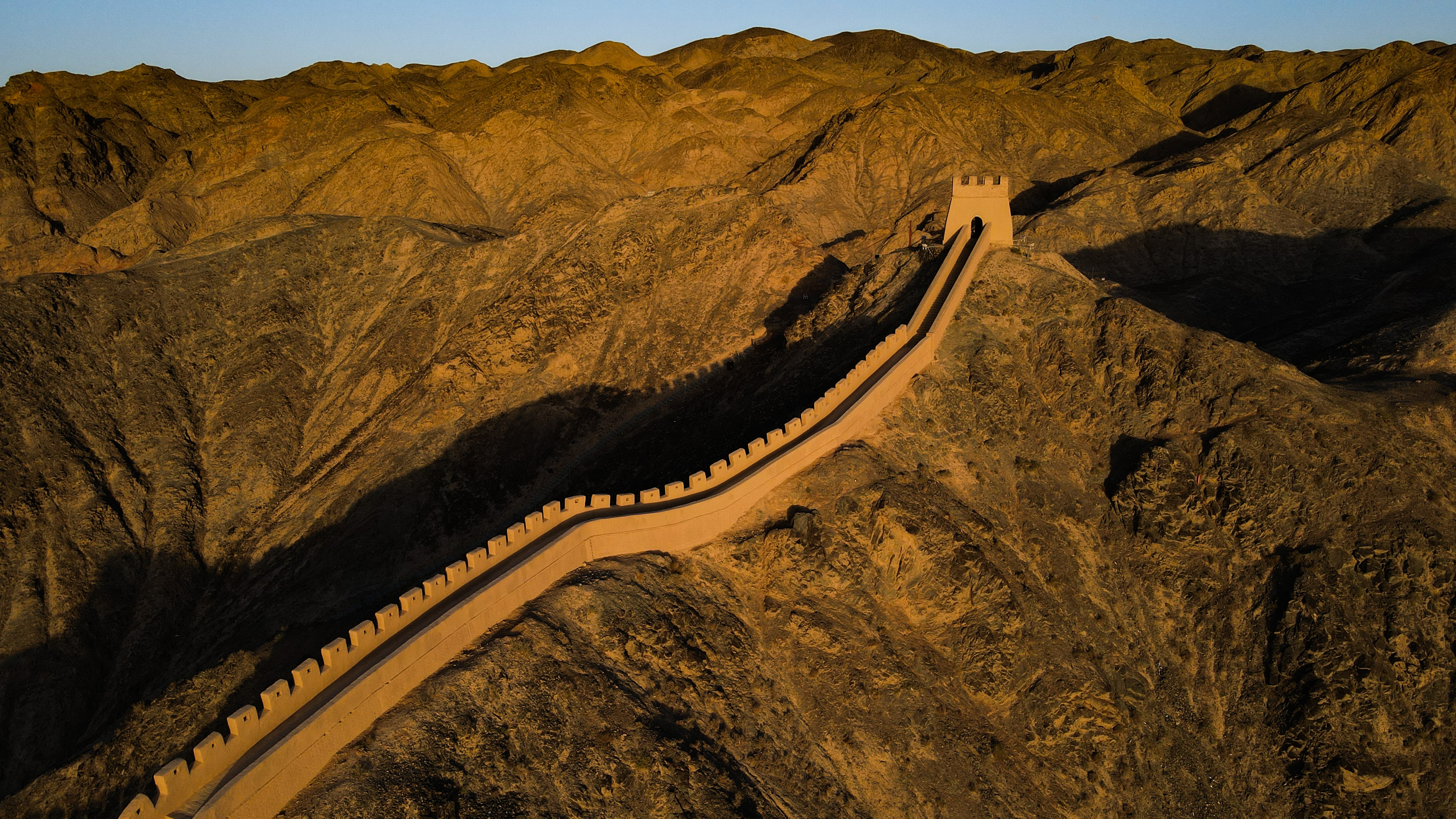 The Great Wall on the Cliff : The Suspended Wall is a part of the Great Wall. The wall here was built on the ridge with the gradient of 45 degrees. It is high in the air and it looks as if it fell down from the top of the hill. So people refer to this section of the Great Wall as the "Suspended Wall". The Suspended Wall, the extension of the walls at the Jiayuguan Pass towards the north, was an integral part of the ancient defense system at the Jiayuguan Pass.