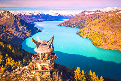 It is China's only European-like ecological site that has been awarded the title of the "Pure Land of the World" due to its unspoiled natural scenery. En-route, appreciate the beautiful scenery of Kanas Lake. Upon arrival, you can climb the Fish Pavilion and enjoy a panoramic view of Kanas.