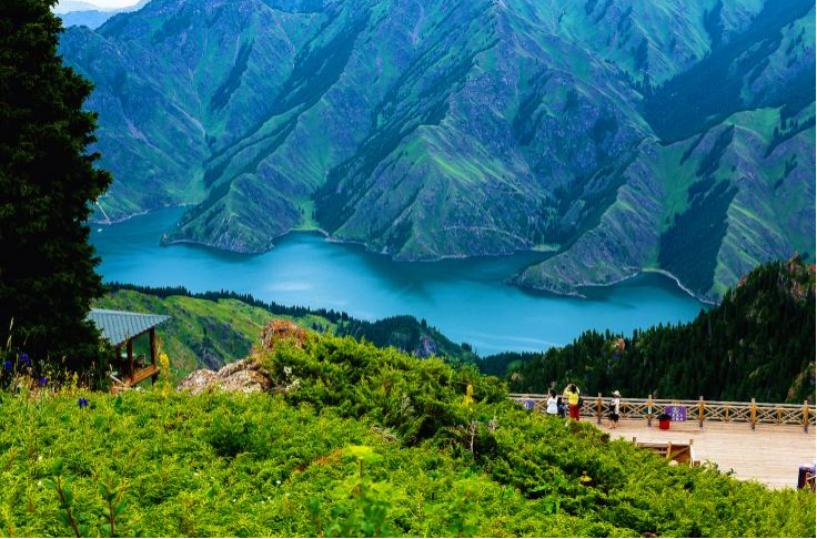 Enjoy the panoramic view of Kanas Lake at the Fish Pavilion and see the beautiful scenery in the distance.