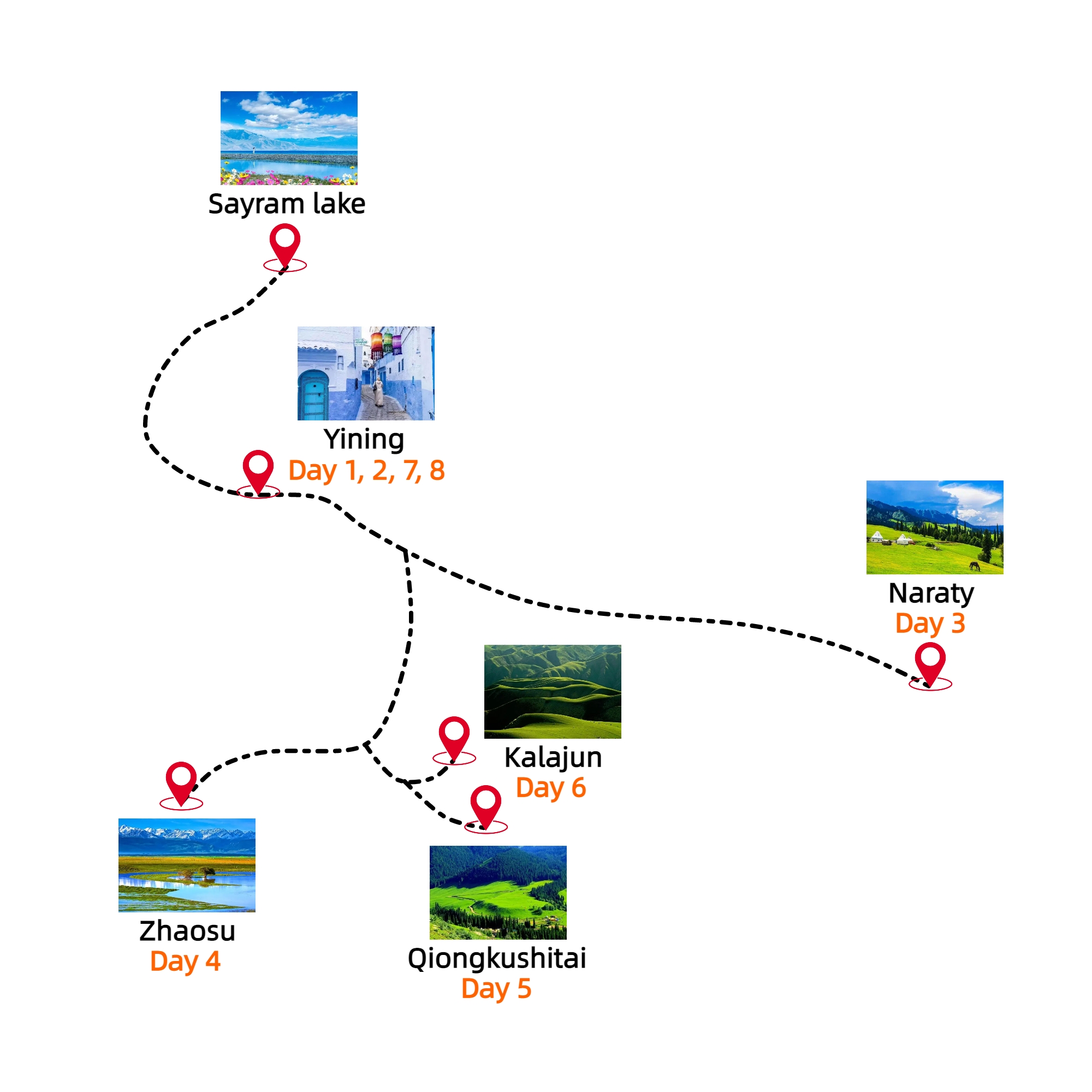 Today is the end of your journey, say goodbye to Yining! You will be transferred to the airport for your flight home. Hope you had a memorable trip and looking forward to seeing you again in your next China trip!